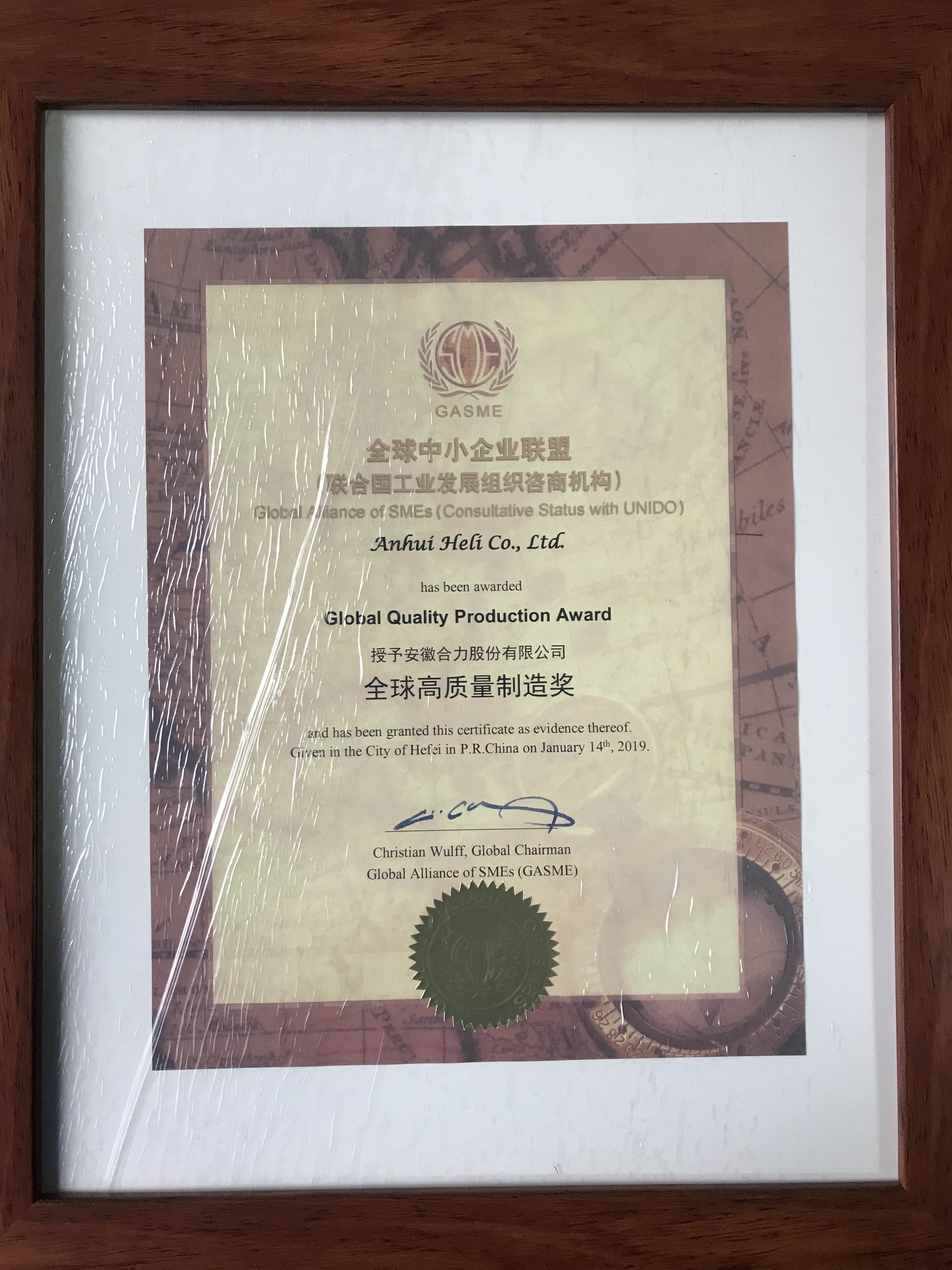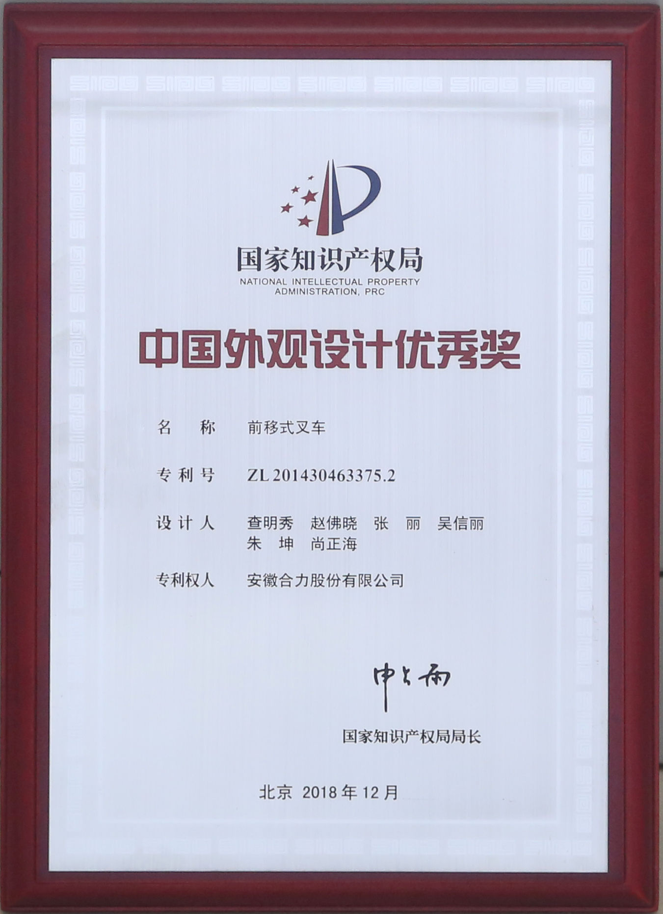 2018 安徽省科學(xué)技術(shù)獎三等獎 H3系列1-3.5噸內(nèi)燃平衡重式叉車
