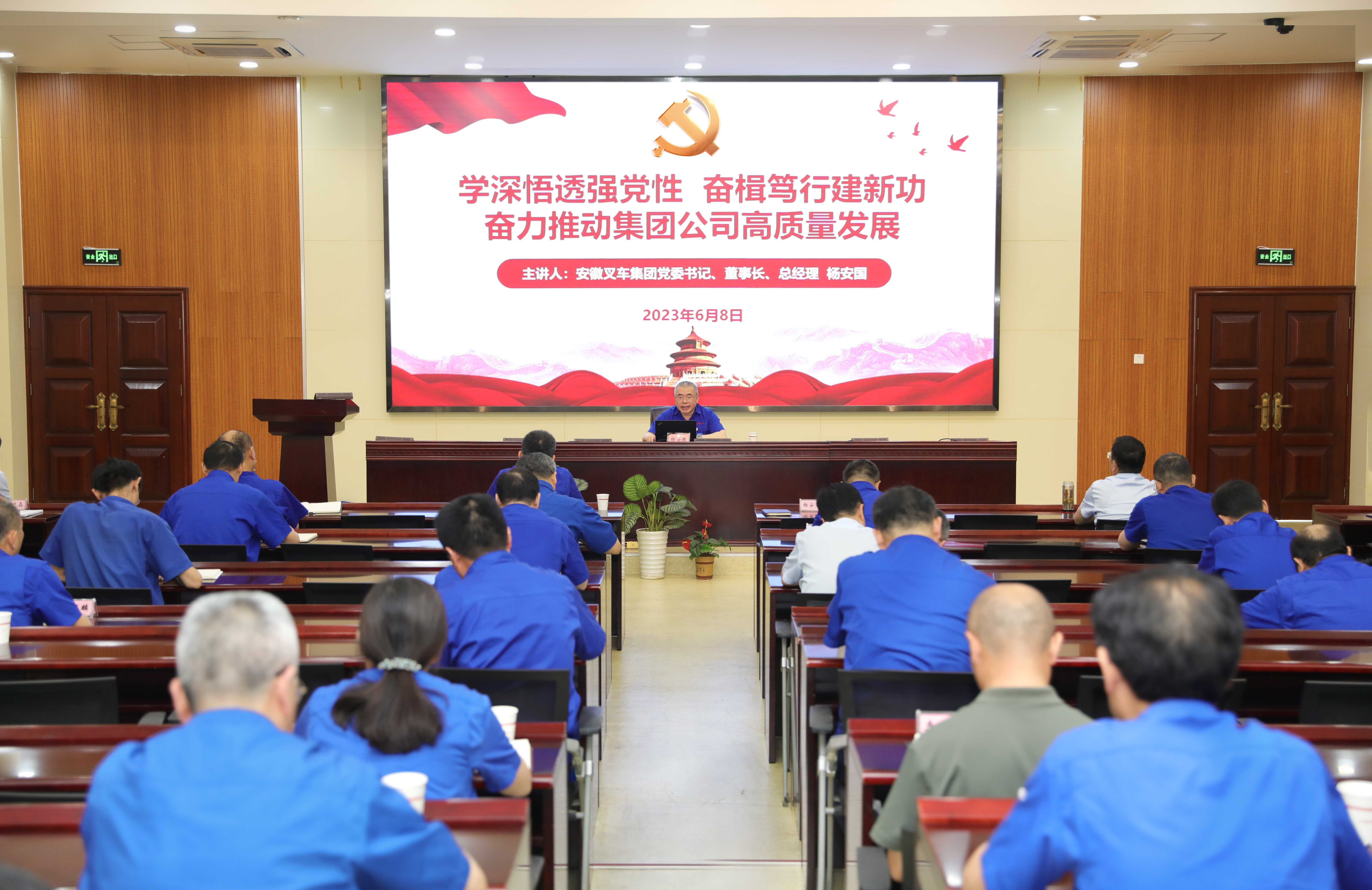 為推動(dòng)學(xué)習(xí)貫徹習(xí)近平新時(shí)代中國(guó)特色社會(huì)主義思想主題教育走深做實(shí),6月8日下午,安徽叉車(chē)集團(tuán)黨委召開(kāi)主題教育專題黨課報(bào)告會(huì)。安徽叉車(chē)集團(tuán)黨委書(shū)記、董事長(zhǎng)、總經(jīng)理?xiàng)畎矅?guó)作《學(xué)深悟透強(qiáng)黨性 奮楫篤行建新功 奮力推動(dòng)集團(tuán)公司高質(zhì)量發(fā)展》專題黨課報(bào)告。安徽...
